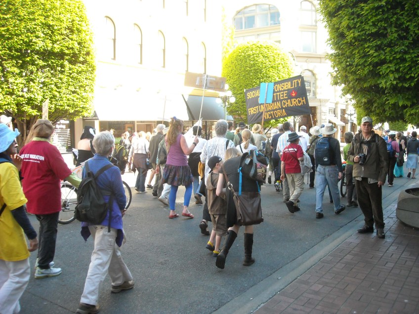 some people protesting farmed salmon