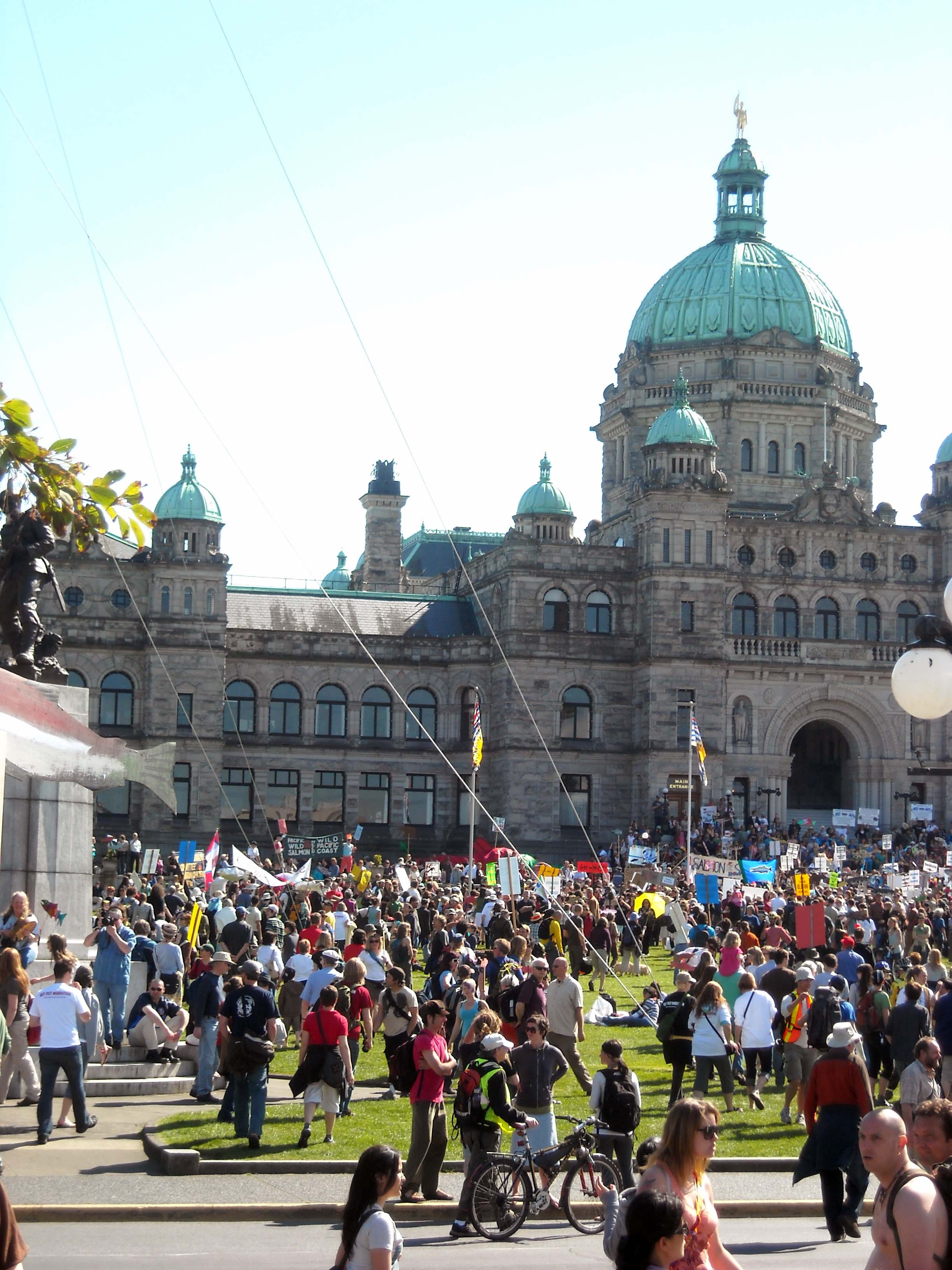 some people protesting farmed salmon