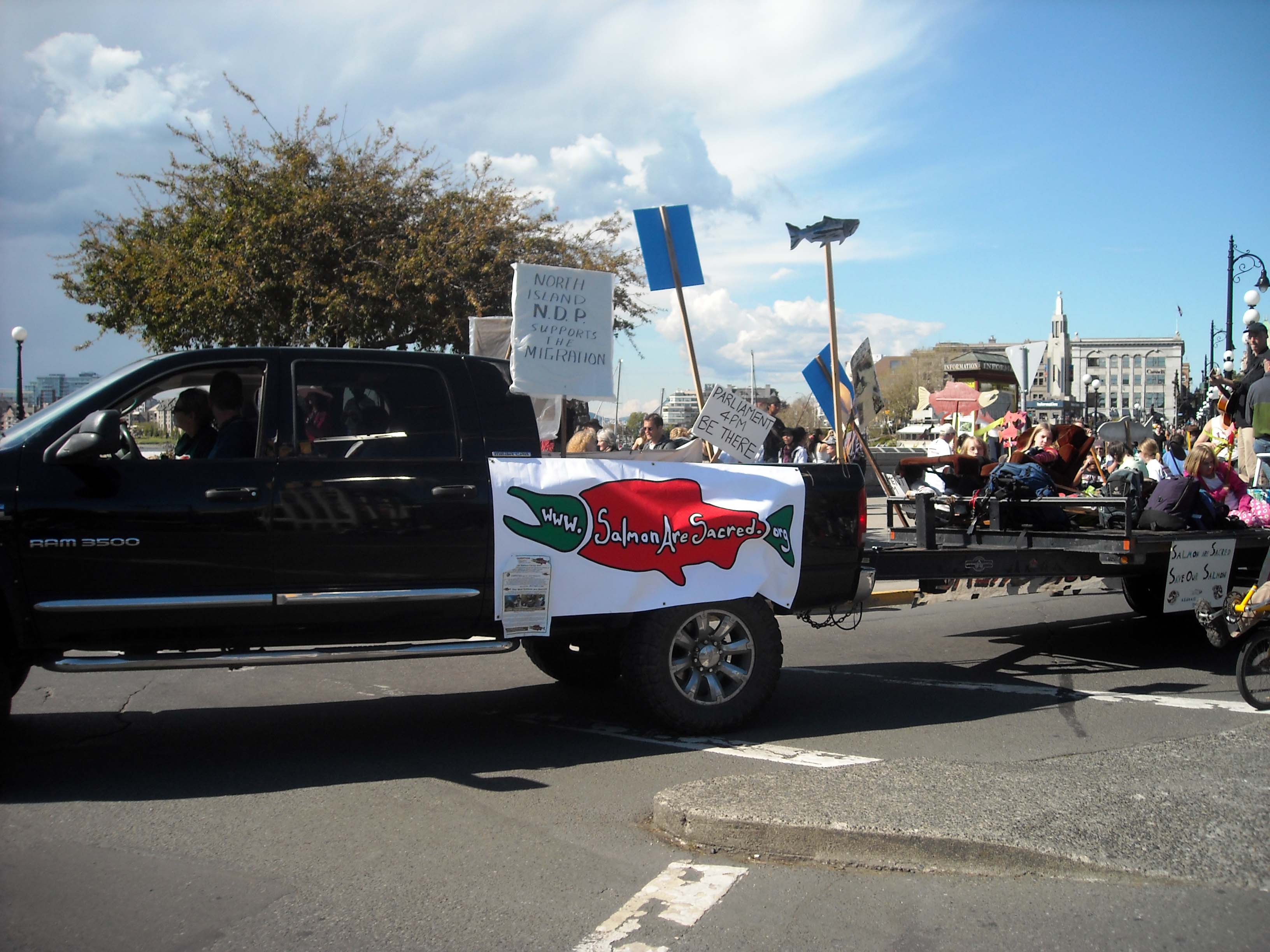 some people protesting farmed salmon