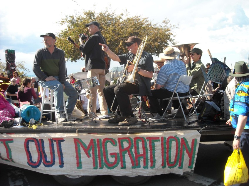 some people protesting farmed salmon