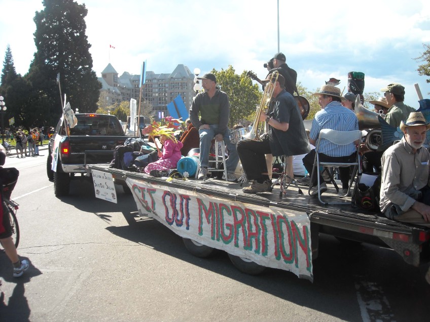some people protesting farmed salmon